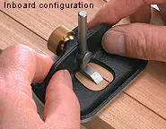 Il ferro può essere montato sia all'interno della suola per applicazioni standard che all'esterno della suola per lavori fino agli angoli. La vite di serraggio è posizionata sul retro del ferro, in modo da non ostacolare né la vista della lama né l'uscita dei trucioli. Durante la regolazione della profondità di taglio, il ferro è tenuto in posizione dalla pressione di un disco a molla.